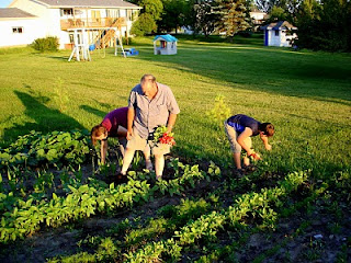 Ever since I was 5 years old, I remember seeing my dad at the helm of his garden tiller. I knew this meant a lot of work, a lot of complaining from my older siblings, and a whole bunch of fresh veggies. We were raised to get our chores finished before we could do anything else, and in the summer months when school was out this meant being dragged out of bed to weed the garden. In my teenage years this meant dragging myself out of bed at noon, and then having to fight the sun at it's highest point, sweat dripping in my eyes and bugs buzzing all around me. It was my own fault that I didn't get up at seven when my mom first started prodding me, as well as at 9 when she finally gave up. It seemed an endless battle, having to start it all over again the following week. I swore I would NEVER make my kid weed a garden, nor would I ever have one for that kid to weed. What a waste of time. Why couldn't we just buy our veggies at the store like everyone else?
