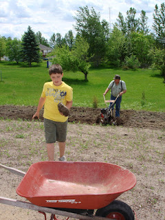 One thing we are never short of in our yard is rocks, and as Grandpa Dave tilled we walked behind him to gather the big ones, which would later be added to our rock fire pit I had put together with all the rocks collected during excavation and throughout my landscaping projects. Riley has been such a wonderful help during all of our projects, and he knows how much this means not only to me, but to his grandpa too. I am so trying to instill in him the things that are important in life; hard work, patience, and respecting the earth and all it can provide for us. He gets it already, and I am so proud of that.