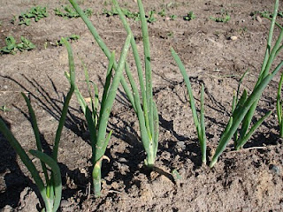 Onions in yellow, white, and red, that Riley planted with his two growing hands.