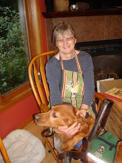 B.J. Carpenter contributed the recipes, I imagine with just a bit of taste testing from her companion, Gracie. She is a professionally trained chef, culinary instructor, certified dietary manager, and freelance food writer. The apron she is wearing is one of Shelley's creations.