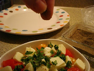 Fresh mozzarella has become more available in our grocery stores over the years, as have fresh herbs, such as basil.  You can usually find a good tomato somewhere around town as well.  But for the times when all those things aren't in abundance, I have come up with a tasty alternative to the traditional Italian Caprese Salad.