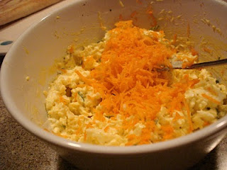 At the time I made this I had some fresh carrots from our local Mennonite farm, but the next time I make it (probably this weekend) I will have carrots from my own garden to use.  Wherever yours are from, get them shredded and add some to the mix.  They add a hint of sweetness and essential vitamins as well.