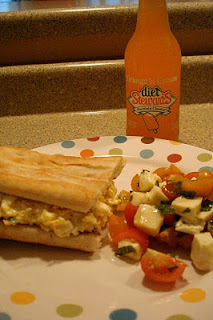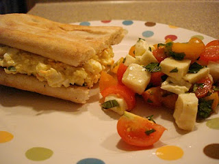 I piled my egg salad on a fresh piece of Naan bread, purchased on the same trip to St. Paul at Trader Joe's.  They just built a new store near my sister's house, and she has been in grocery shopping Heaven ever since.  If you see one, go there.  It's an amazing place.