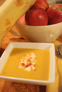 After being confronted with a box full of butternut squash from my garden I knew I either had to give it all away or find a good recipe for something that I could stomach. I had originally planted it because my parents both love squash, but after they took what they wanted to deal with I still had some left. I tried squash and apple bread; it was okay, but I didn't love it, although my parents and their neighbors sure did. Next I thought I'd try some soup since I had tried a bite of someone else's squash soup in a restaurant once and kinda took a liking to it. I went to my favorite recipe sites and printed off four of the highest rated recipes, then morphed them into my own.