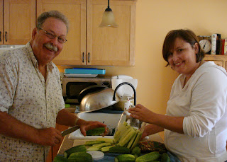 It's amazing how many things they know about canning, things I had never read in any of the five books I had been perusing over the last year. Did you know that if you cut the cukes off the vine with a knife, leaving about a quarter inch of vine attached, that it promotes growth to the rest of the fruits? (rather than just twisting them off, which I had been doing).